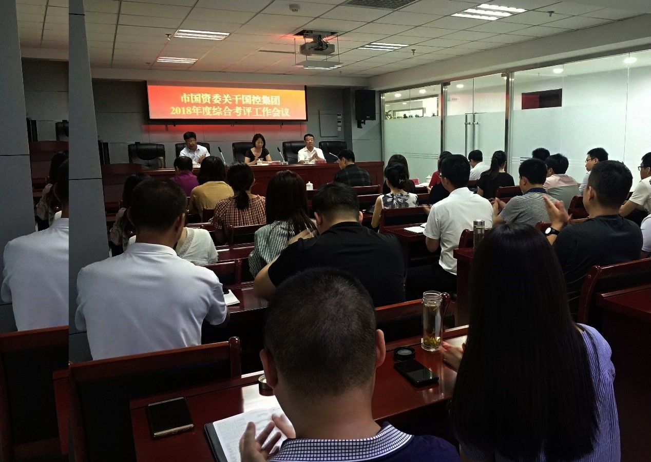 2019年7月18日,市国资委关于天行平台2018年度综合考评工作会议在集团公司本部第一会议室召开,会议由市天行平台总经理徐俊儒主持,董事长张建军做《2018年度工作完成情况的报告》,市国资委党委委员、副主任张楠出席会议并讲话,集团公司本部及资产运营公司全体员工参加。