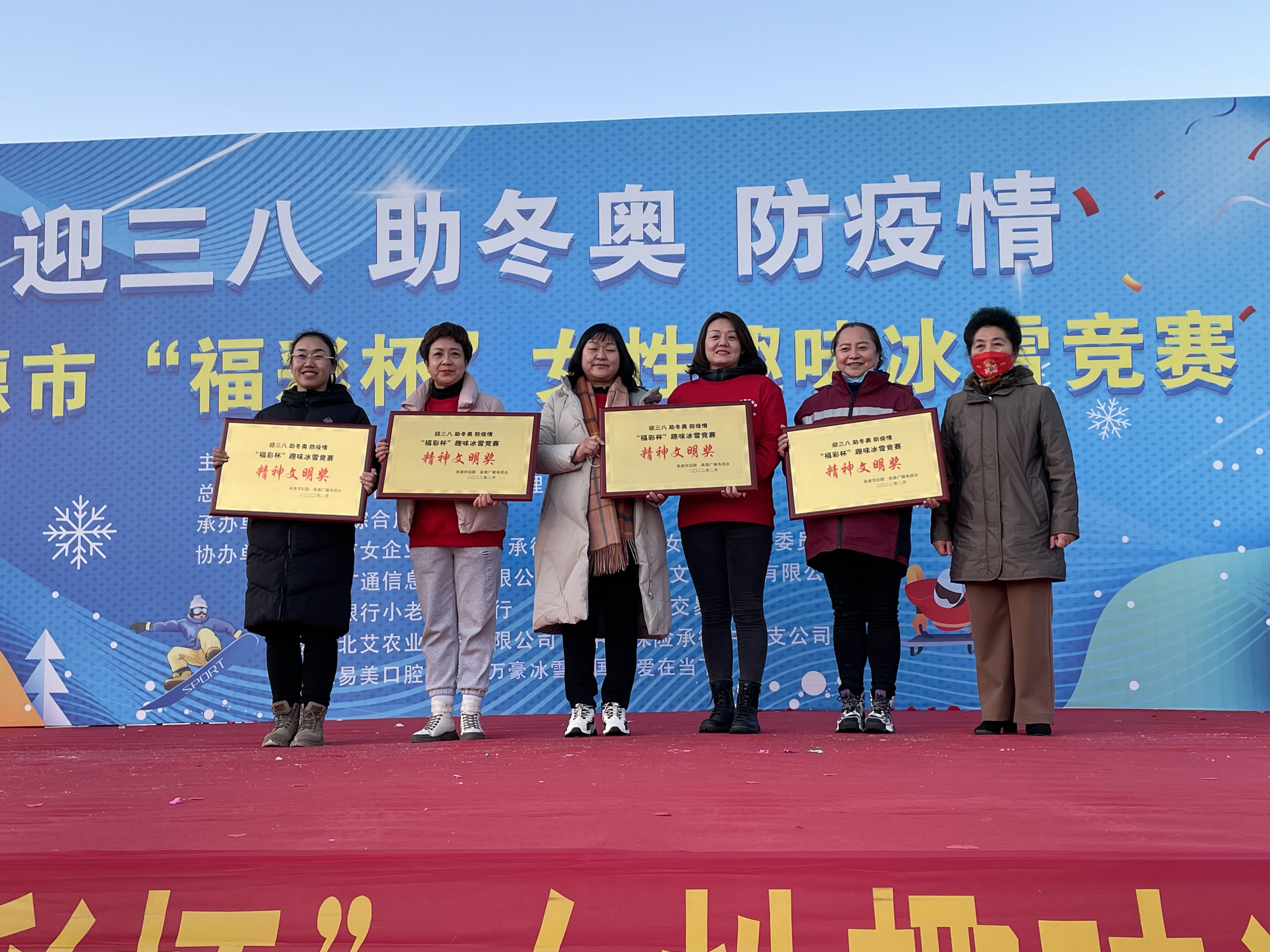 此次活动共有来自市直机关、企事业单位400余名女干部职工组成36支代表队参加。分为传统冰车接力、单人冰上自行车接力、奋勇向前趣味接力、冰上拔河等6项竞赛项目,天行平台的女职工们团结一心、顽强拼搏、奋勇争先,赛出了风格、赛出了水平,以优异的成绩展示出了国控女性风采和精神风貌,并荣获“精神文明奖”。
