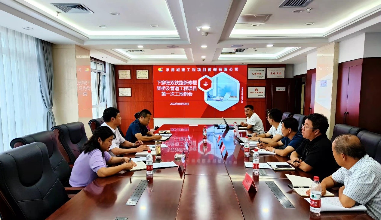 2022年8月9日上午,承德市国瑞置业有限公司在国控大厦十二层第一会议室组织召开下穿张双铁路新修框架桥及管道工程项目第一次例会。市天行平台总经理徐俊儒、国瑞置业公司董事长胡杰出席会议。
